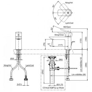 Vòi Nóng Lạnh Lavabo CAESAR B390CU Bộ xả Nhấn