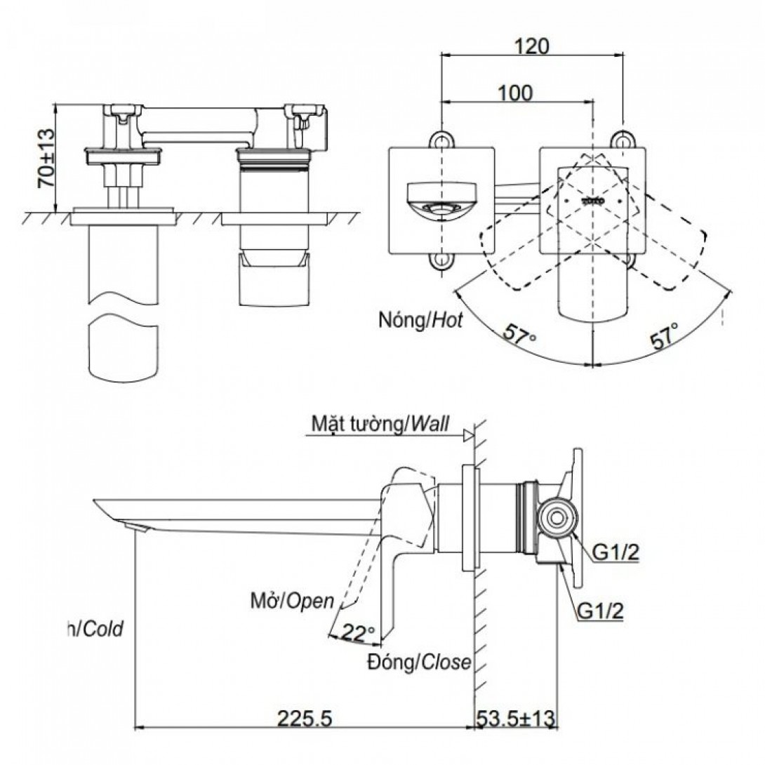 Vòi Nóng Lạnh Lavabo CAESAR B120CU Bộ Xả Nhấn