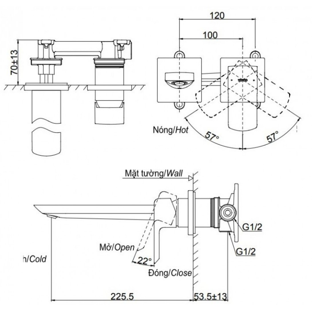 Vòi Rửa Lavabo Inax LFV-211S (LFV211S) Nóng Lạnh Chậu 3 Lỗ