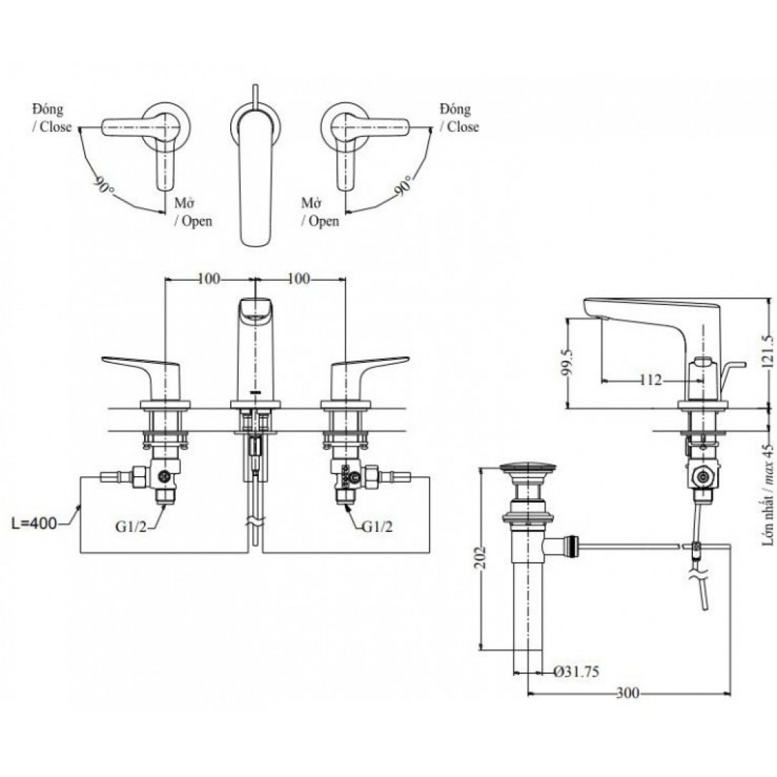 Vòi Nóng Lạnh Lavabo CAESAR B120CU Bộ Xả Nhấn