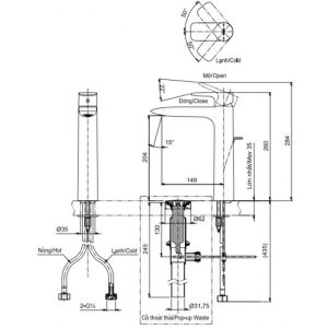 Vòi Nóng Lạnh Lavabo CAESAR B380CU Bộ Xả Nhấn