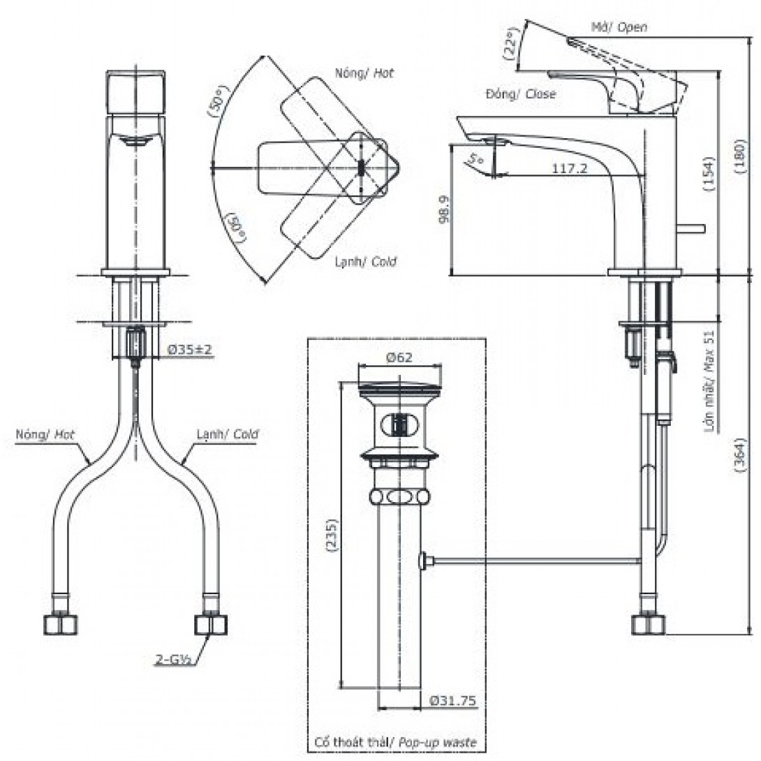 Vòi Nóng Lạnh Lavabo CAESAR B120CU Bộ Xả Nhấn
