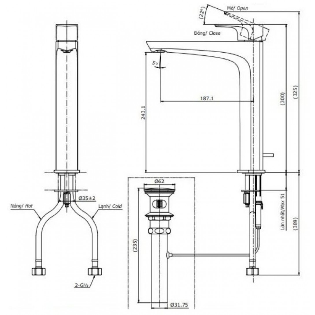 Vòi Rửa Lavabo Inax LFV-211S (LFV211S) Nóng Lạnh Chậu 3 Lỗ
