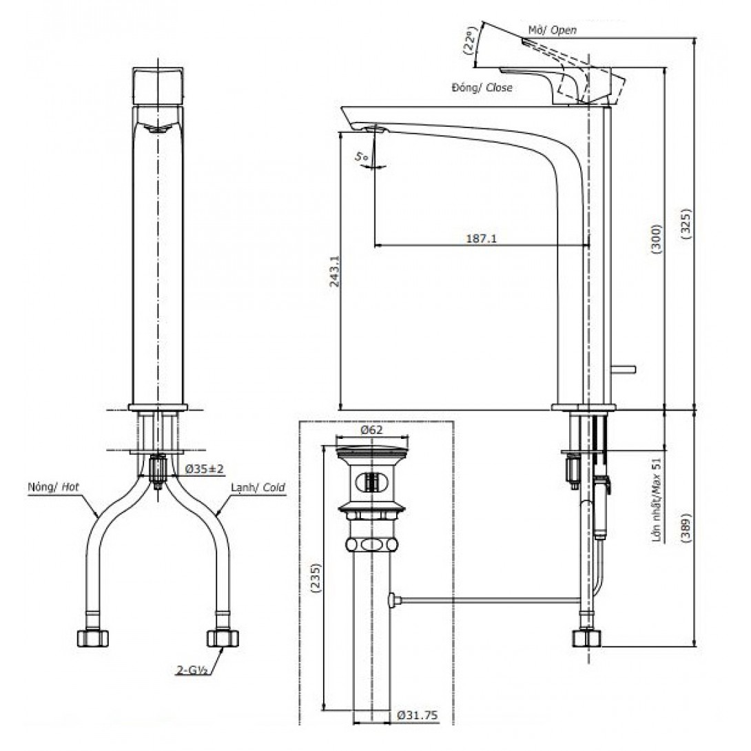 Vòi Nóng Lạnh Lavabo CAESAR B560CU Bộ xả Nhấn