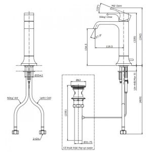 Vòi Nóng Lạnh Lavabo CAESAR B430CU Bộ xả Nhấn