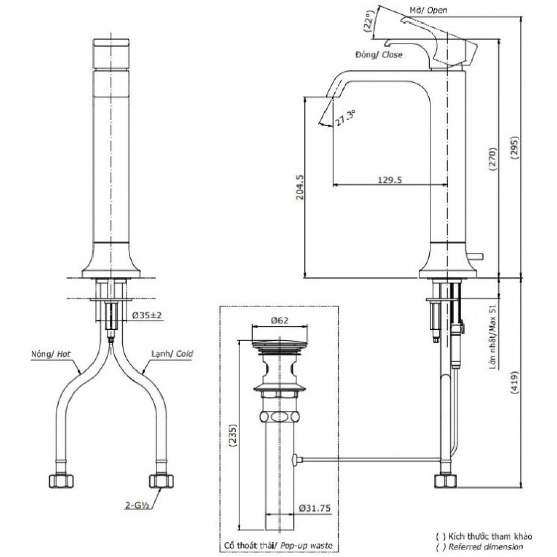 Vòi Rửa Lavabo American Standard WF-0902 (WF0902) Milano Cao Nóng Lạnh