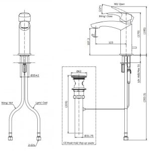 Vòi Nóng Lạnh Lavabo CAESAR B430CU Bộ xả Nhấn