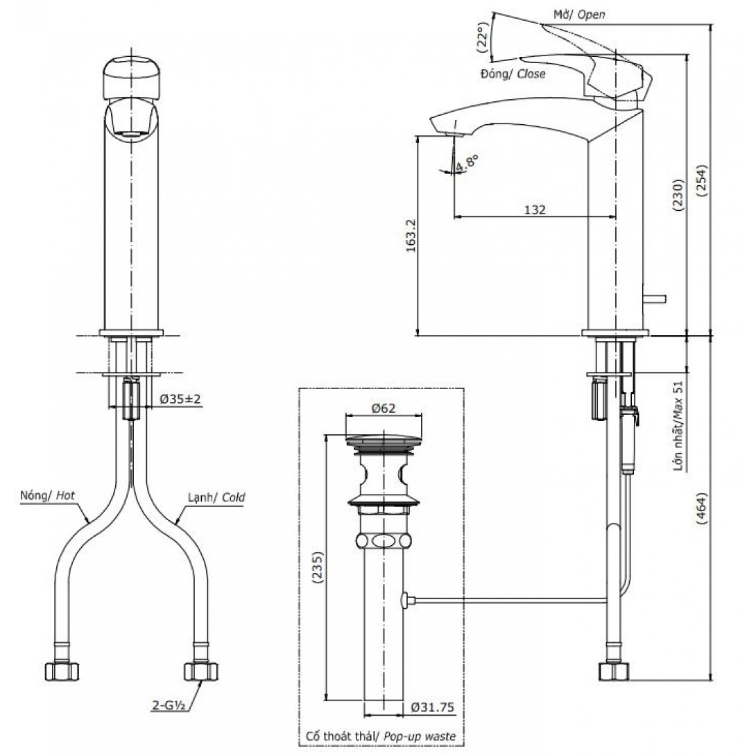Vòi Nóng Lạnh Lavabo CAESAR B390CU Bộ xả Nhấn