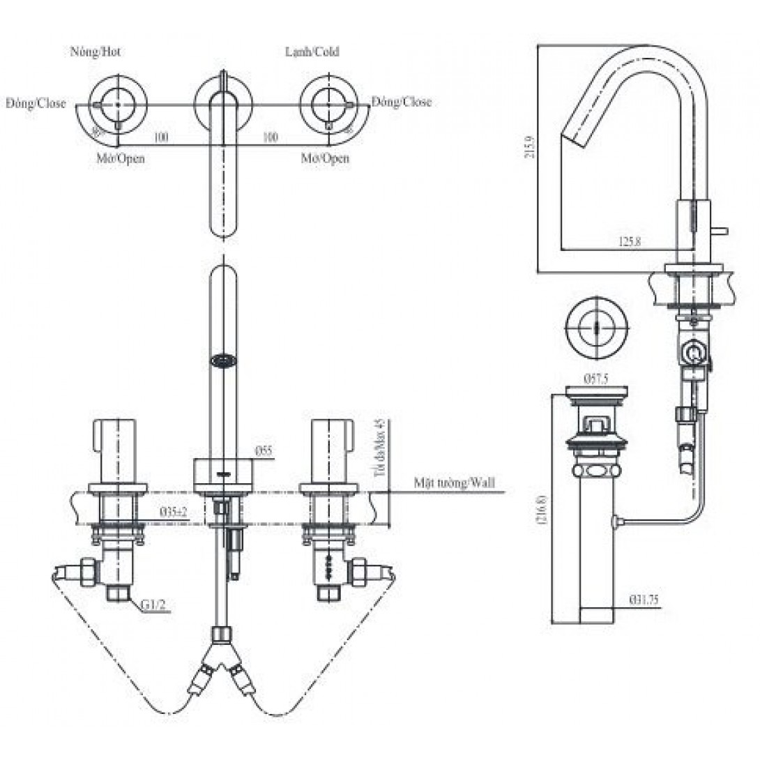Vòi Nóng Lạnh Lavabo CAESAR B570CU Bộ Xả Nhấn