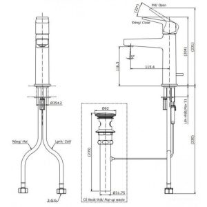 Vòi Nóng Lạnh Lavabo CAESAR B380CU Bộ Xả Nhấn