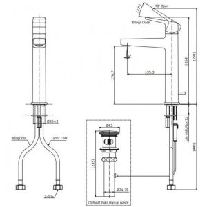 Vòi Nóng Lạnh Lavabo CAESAR B570CU Bộ Xả Nhấn