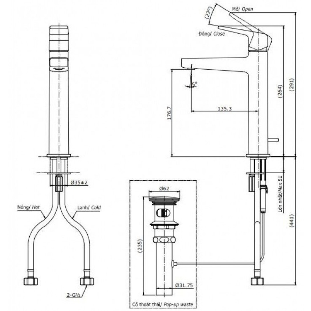 Vòi Nóng Lạnh Lavabo CAESAR B560CU Bộ xả Nhấn
