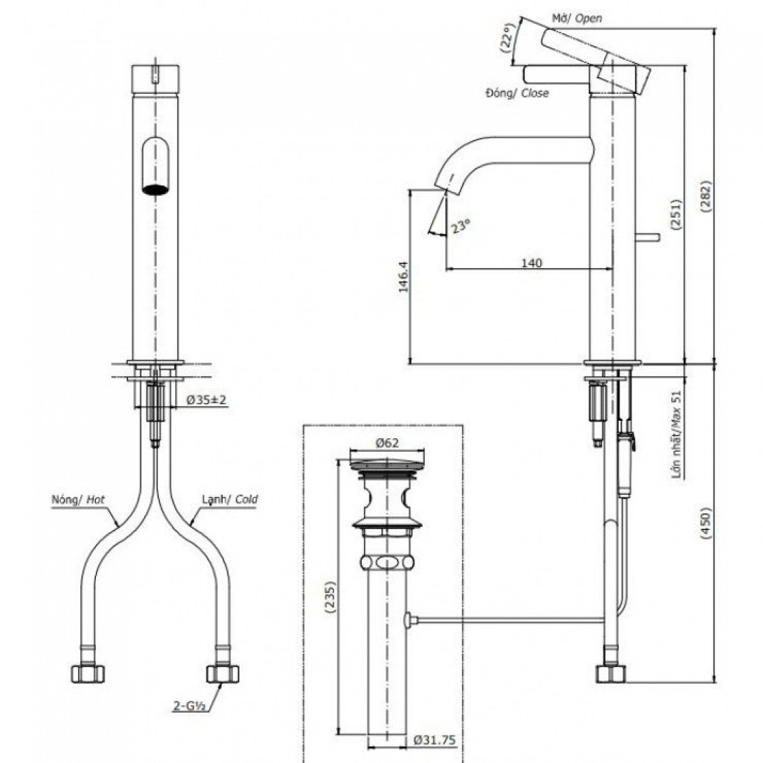 Vòi Nóng Lạnh Lavabo CAESAR B570CU Bộ Xả Nhấn