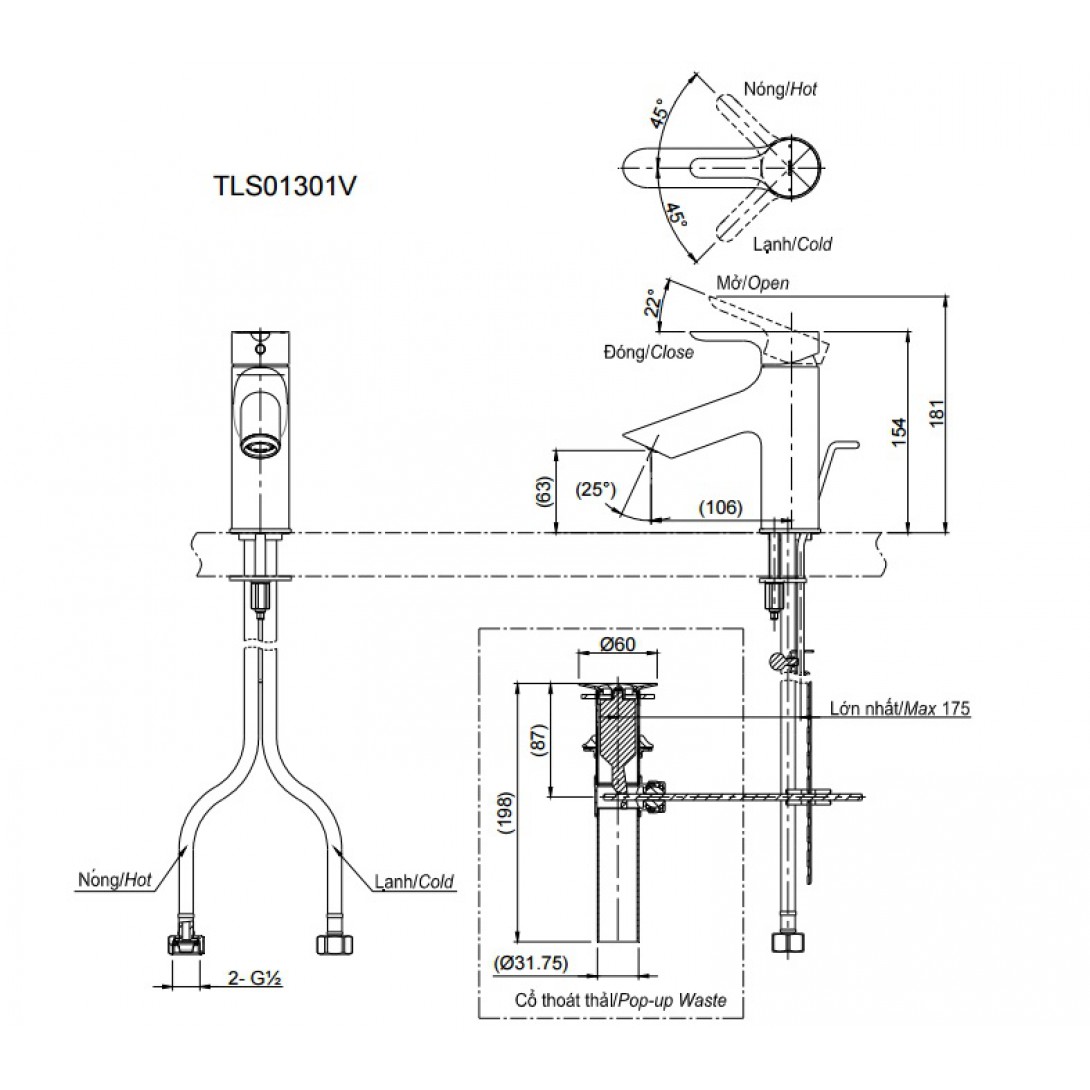 Vòi Nóng Lạnh Lavabo CAESAR B570CU Bộ Xả Nhấn