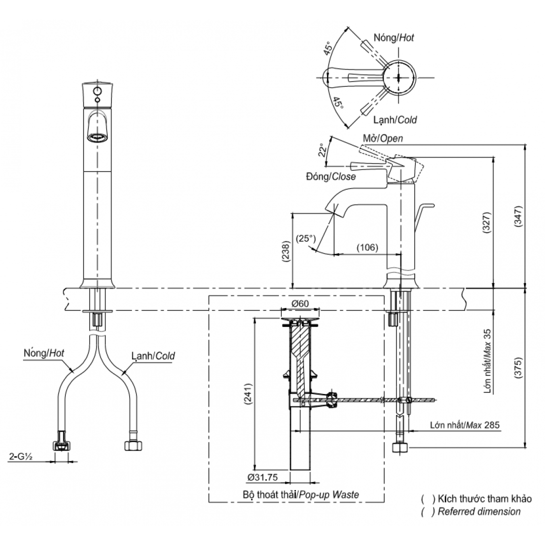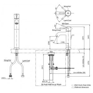Vòi Nóng Lạnh Lavabo CAESAR B120CU Bộ Xả Nhấn