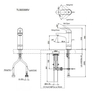Vòi lavabo TOTO TLS03305V bao gồm chặn xả, KHÔNG bao gồm ống xả thải chữ P TVLF401