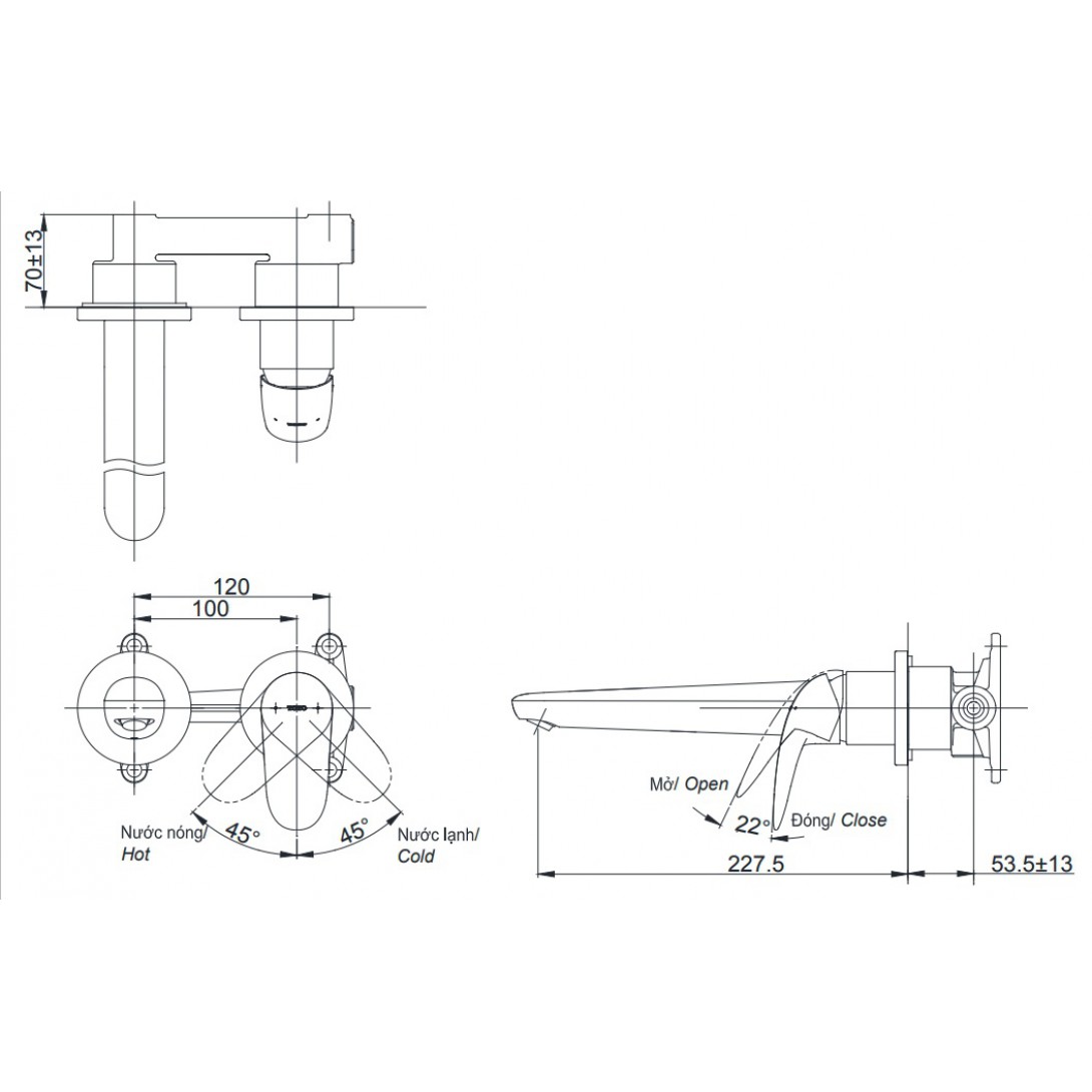 Vòi Nóng Lạnh Lavabo CAESAR B402CU Chậu 3 Lỗ