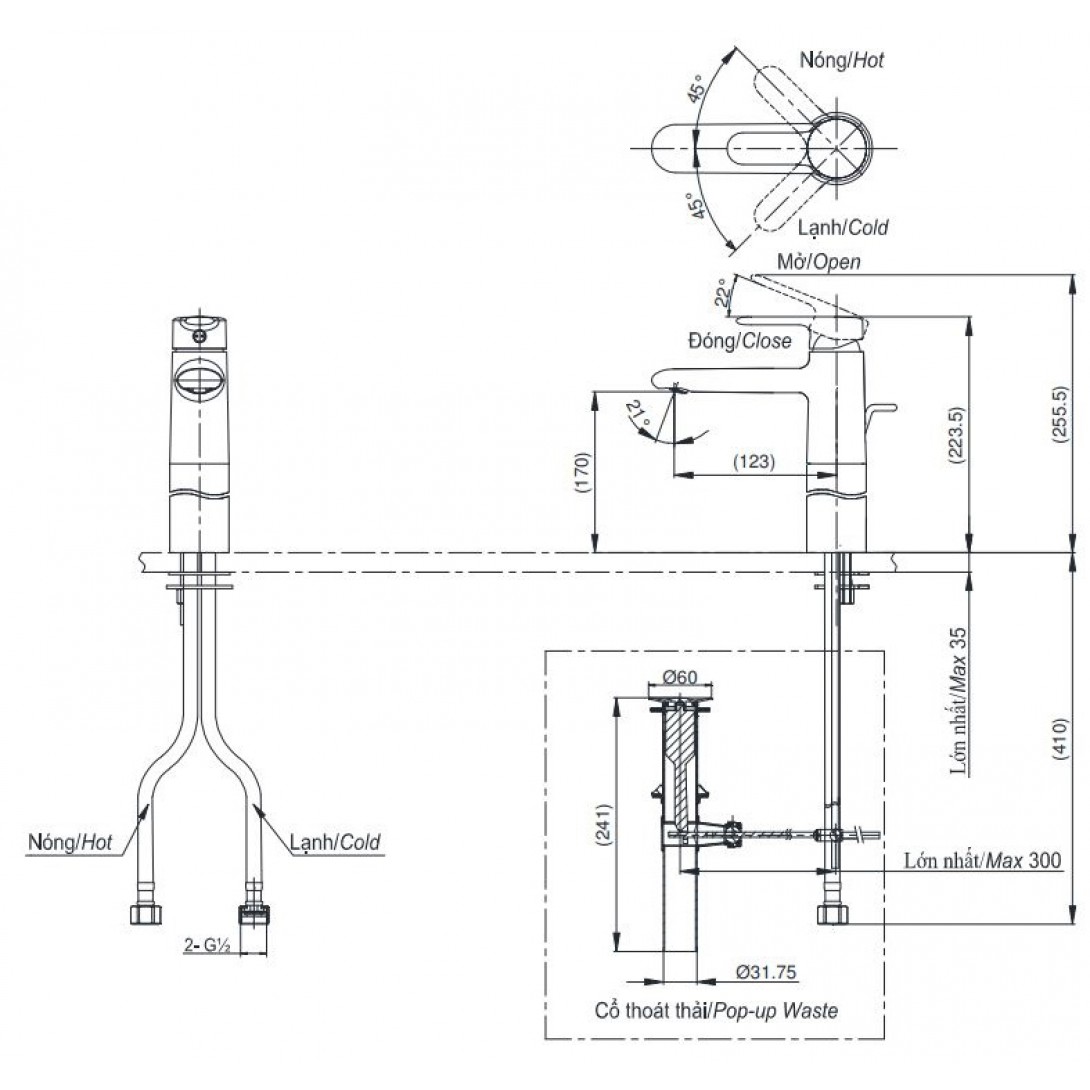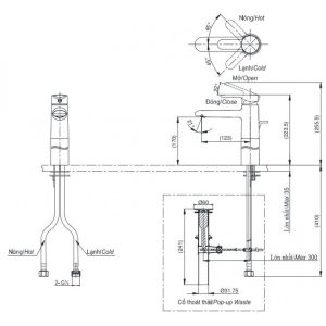 Vòi Nóng Lạnh Lavabo CAESAR B390CU Bộ xả Nhấn