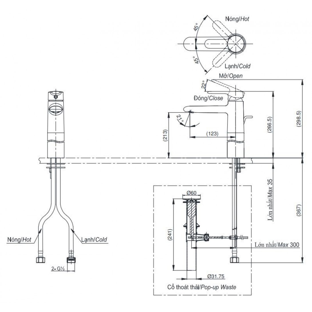 Vòi Nóng Lạnh Lavabo CAESAR B330CU Xả Nhấn