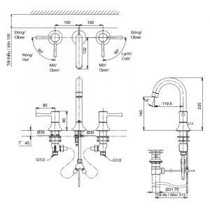 Vòi Rửa Lavabo Inax LFV-211S (LFV211S) Nóng Lạnh Chậu 3 Lỗ