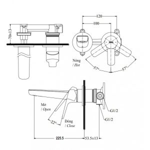 Vòi Nóng Lạnh Lavabo CAESAR B120CU Bộ Xả Nhấn