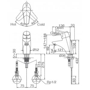 Vòi Nóng Lạnh Lavabo CAESAR B136CU (B136C) Kết Hợp Tay Sen