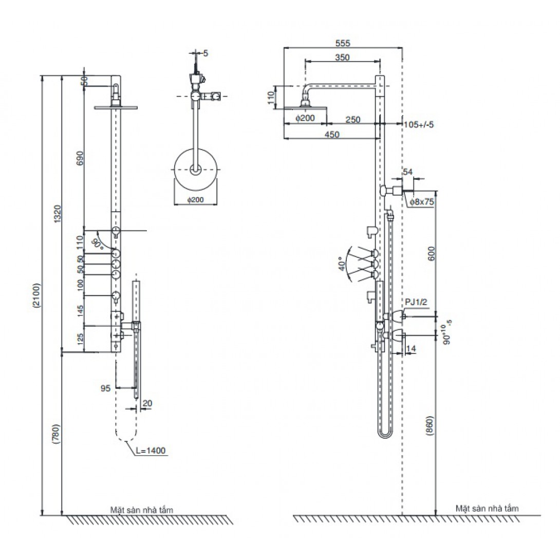 – Bát sen Aerial Shower tiết kiệm nước (Đường kính: 200mm)