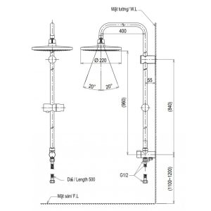Vòi Sen Cây TOTO TBW08406A Nhiệt Độ Vuông 300mm