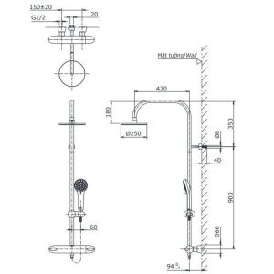 Vòi Sen Cây TOTO TBW07404A Nhiệt Độ Tròn 200mm Dòng G