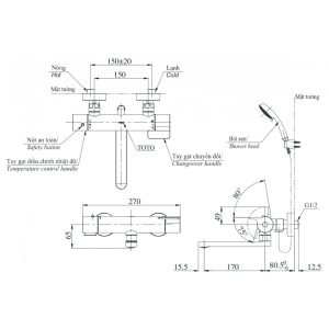 Vòi Sen Cây TOTO TBW08406A Nhiệt Độ Vuông 300mm