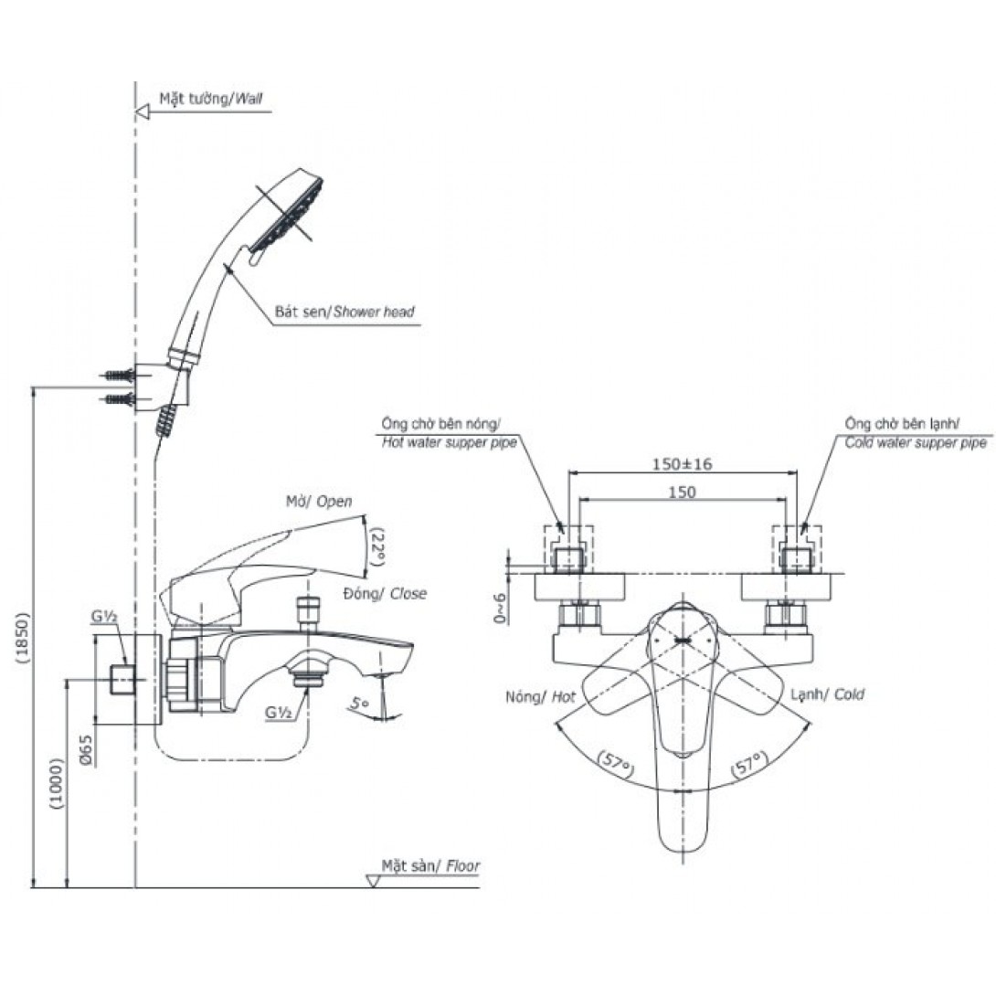 Vòi Sen Tắm Cây Inax BFV-1405S (BFV1405S) Nóng Lạnh