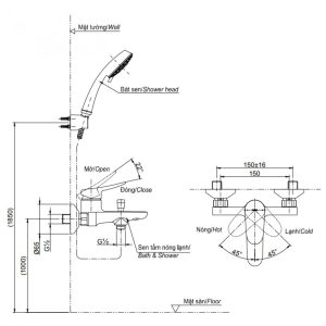 Vòi Sen Tắm Cây Inax BFV-1115S-1C (BFV1115S1C) Nóng Lạnh