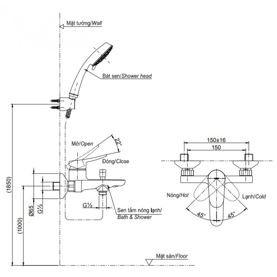 Thân Sen Cây Tắm Đứng COTTO CT623Z95ZH018