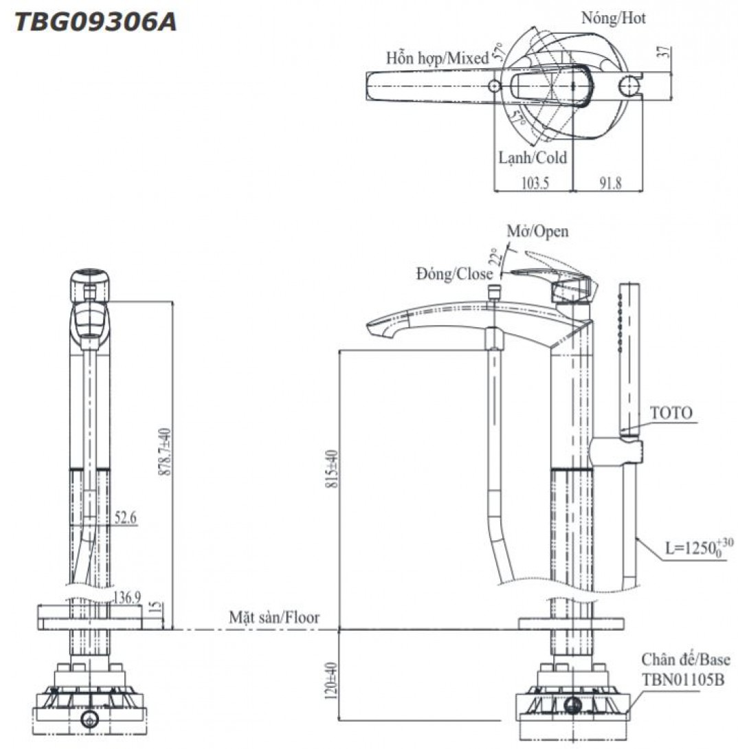 Vòi Sen Cây TOTO TBW08406A Nhiệt Độ Vuông 300mm