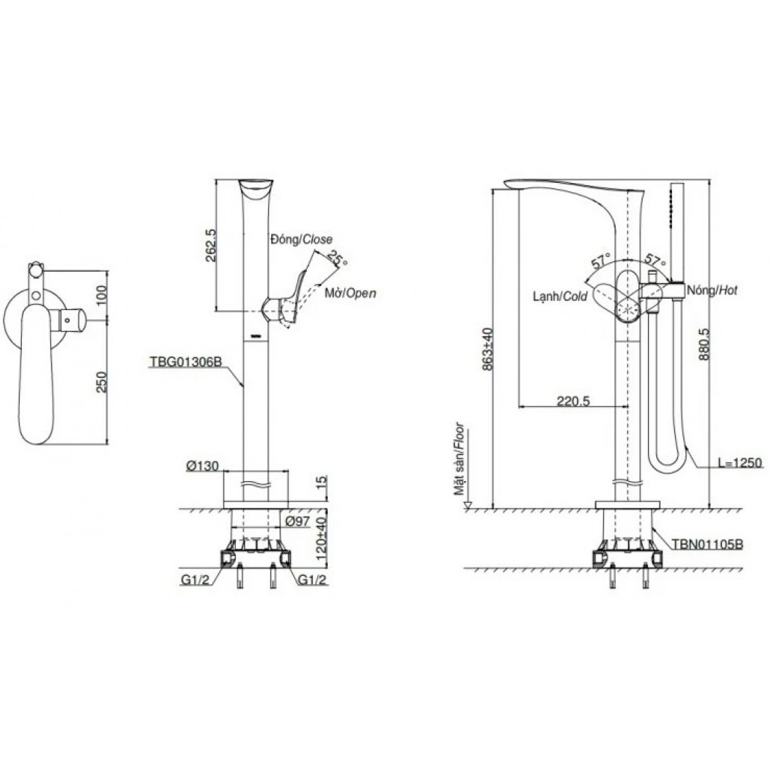 Thân Sen Cây Tắm Đứng COTTO CT623Z95ZH018