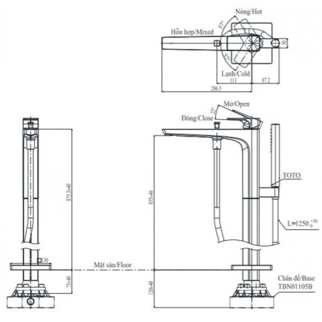 Vòi Sen Cây TOTO TX454SESV2BRN Nhiệt Độ
