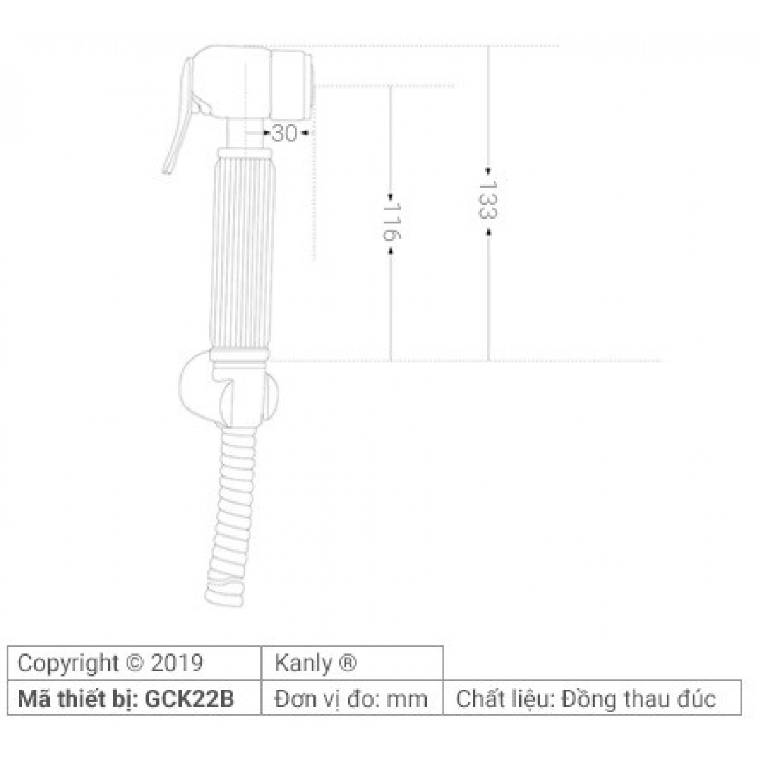Bản vẽ kỹ thuật vòi xịt toilet Kanly GCK22B màu đen