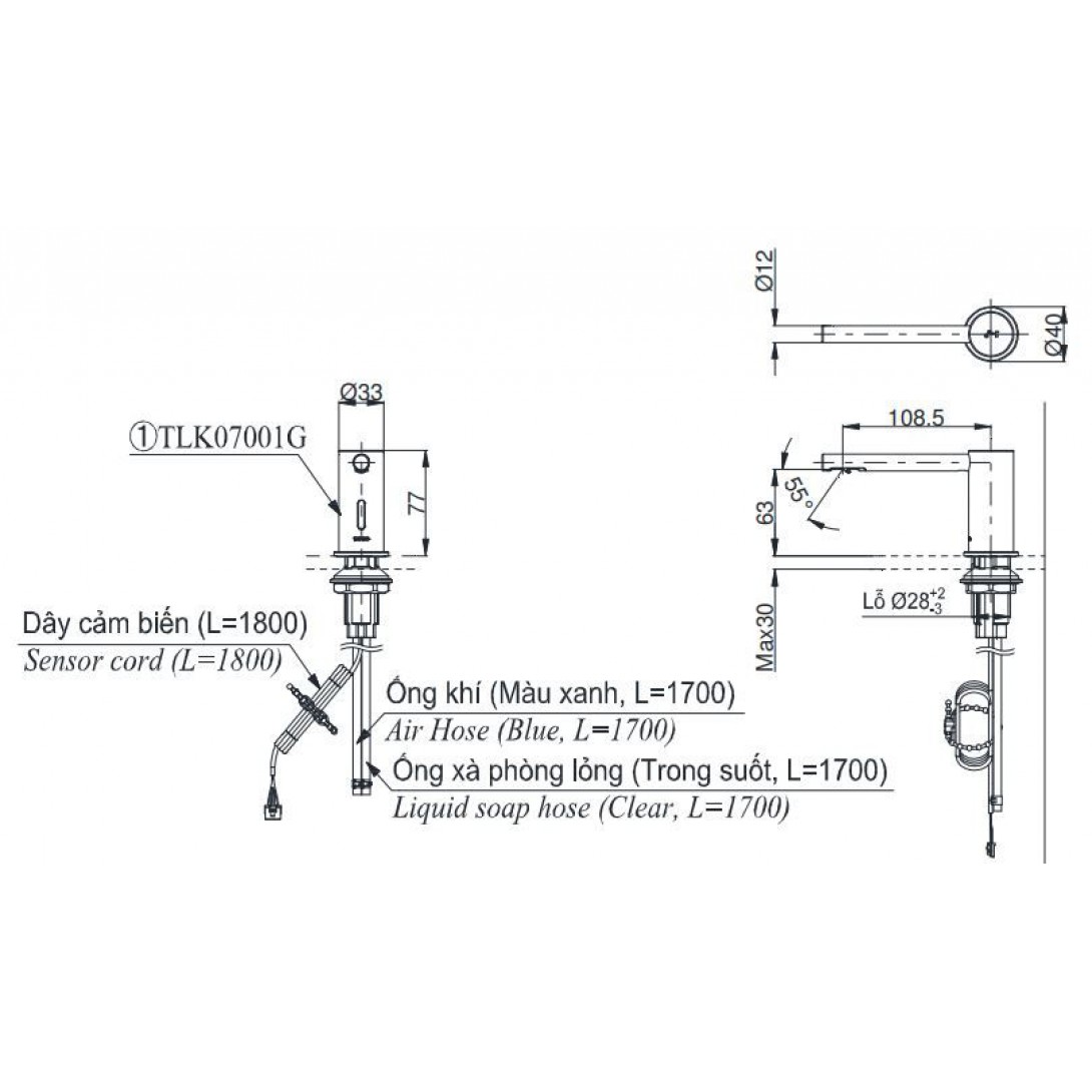 Vòi Xịt Xà Phòng TOTO TLK07002G Tự Động Thân Vừa